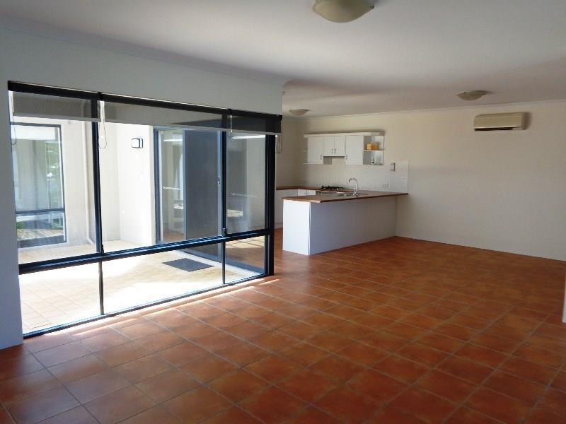 Entry is immediately to the tiled open plan living room with reverse cycle air conditioner, dining and kitchen with stainless appliances.
