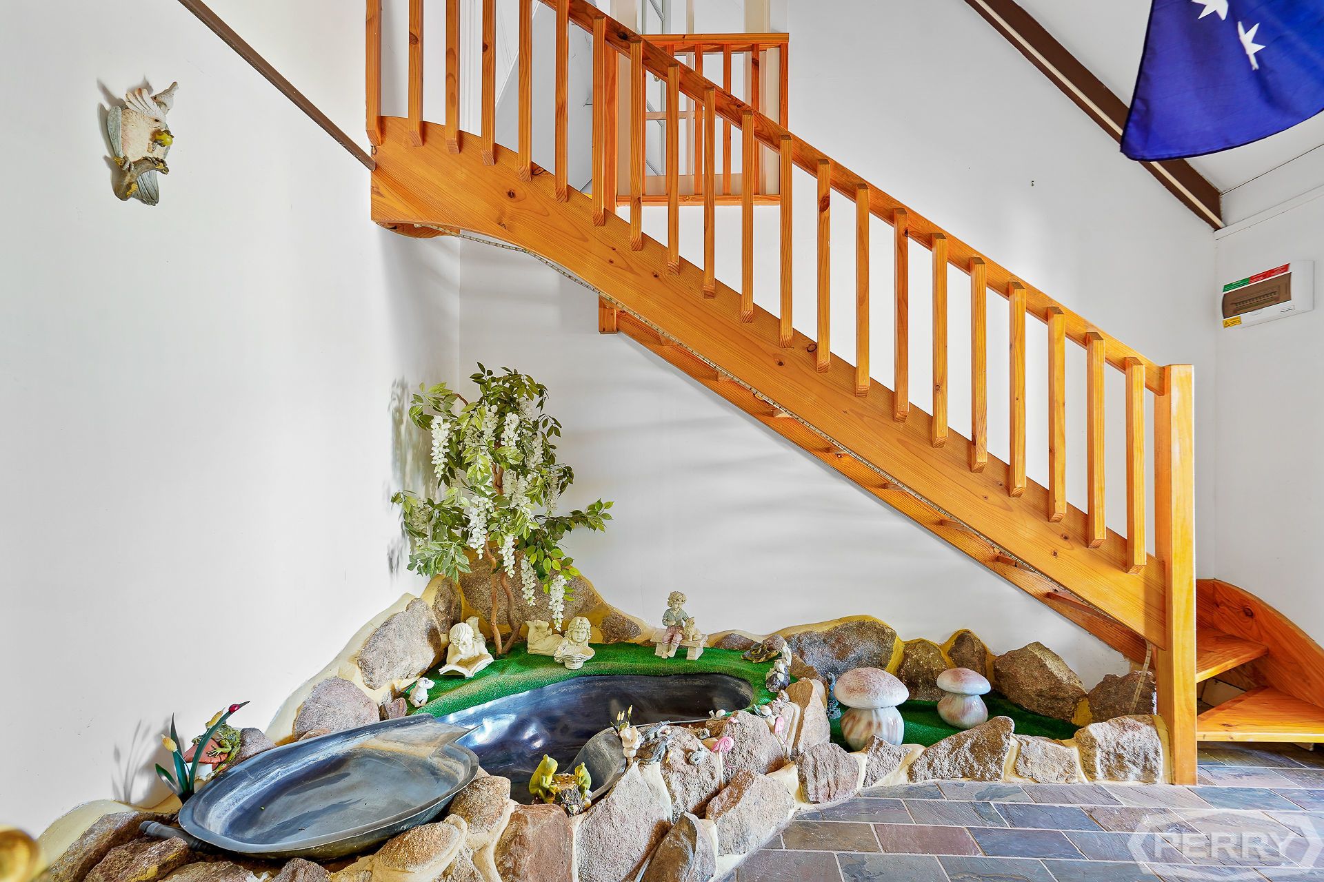 The ground floor features a welcoming entry foyer with water feature, a spacious character lounge with study nook, a large country-style kitchen with excellent storage, and a dining area that connects seamlessly to a versatile enclosed alfresco, perfect for year-round use. The generous master suite includes walk-through robes, a private ensuite, and sliding door access to a secluded enclosed patio, while a second bedroom and traditional laundry complete the lower level.