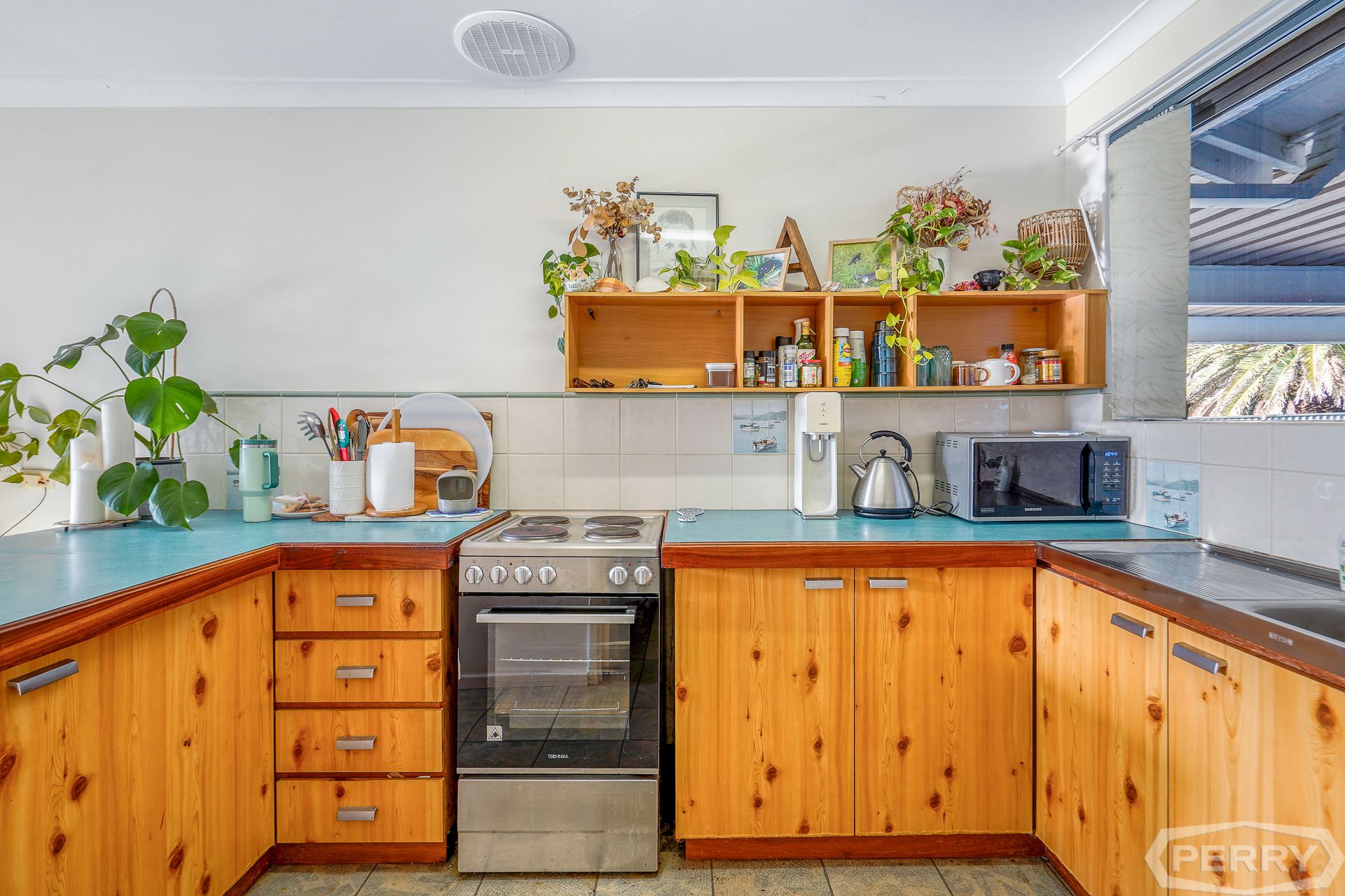 The unit features an open plan living and dining area that enjoys plenty of natural light, with the front lounge room capturing ocean views and beautiful sunsets. The functional kitchen, while in need of some updating, is well-positioned to overlook the outdoor area and provides plenty of scope for enhancement.