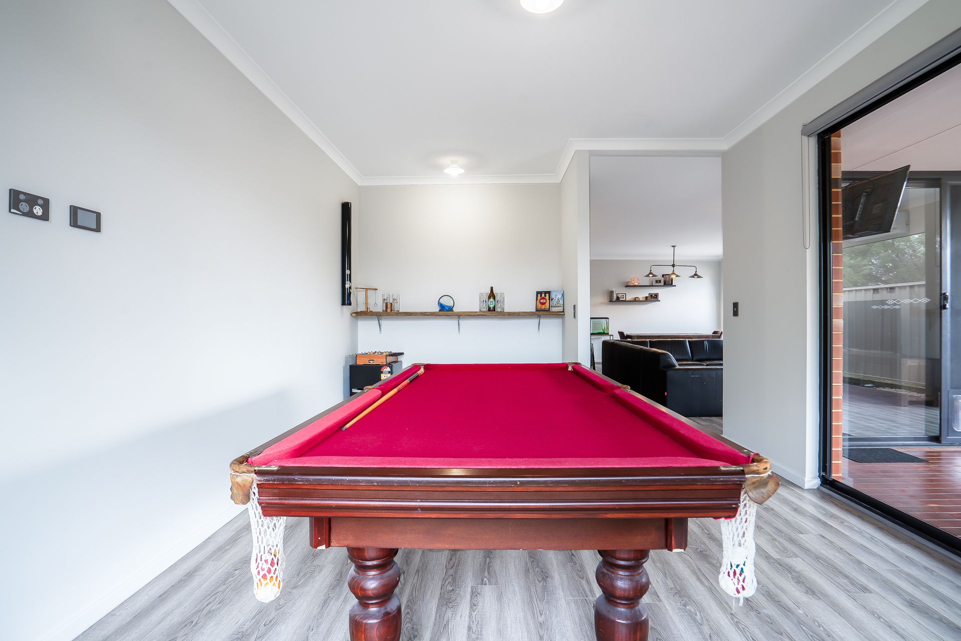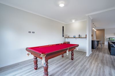 The large master bedroom with walk in robe and well finished ensuite, plus the carpeted theatre room complete the front of the house. Following the flow you enter the impressive heart of the home, extra large dining, lounge, pool room and kitchen with its stone topped breakfast bar, well fitted walk in pantry all offering views of the undercover entertaining area and rear gardens. The hallway leading off to the secondary bedrooms both with built in robes and carpeted flooring, the children's play room or study, main bathroom with bath & shower, large well fitted laundry with walk in linen cupboard.