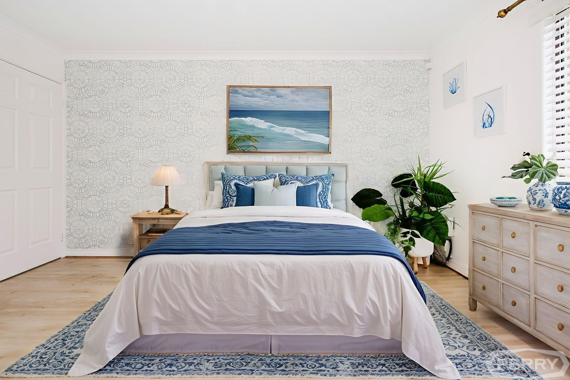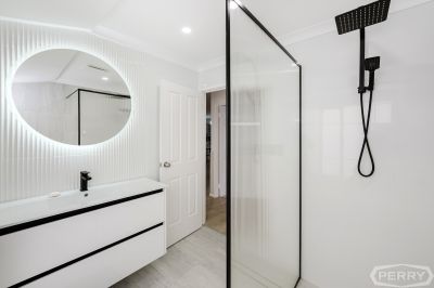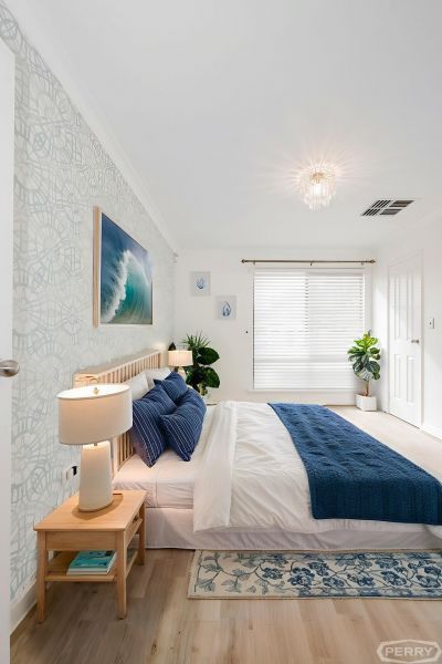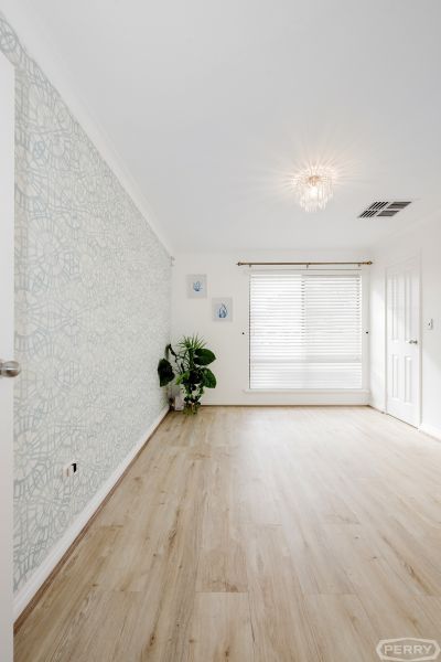 Along with new hybrid flooring, skirting and newly upgraded fixtures throughout the home, the king-sized master suite with walk-in-robe, ensuite bathroom, features elegant wallpaper, dimmable lighting and venetian blinds.