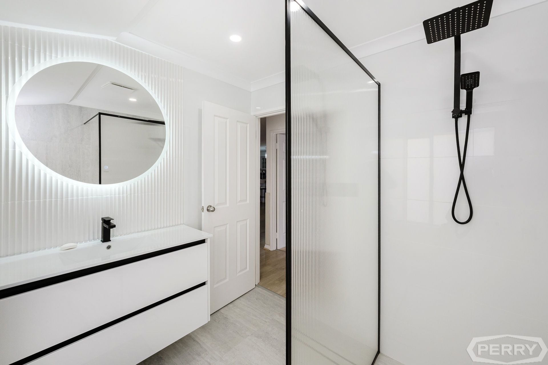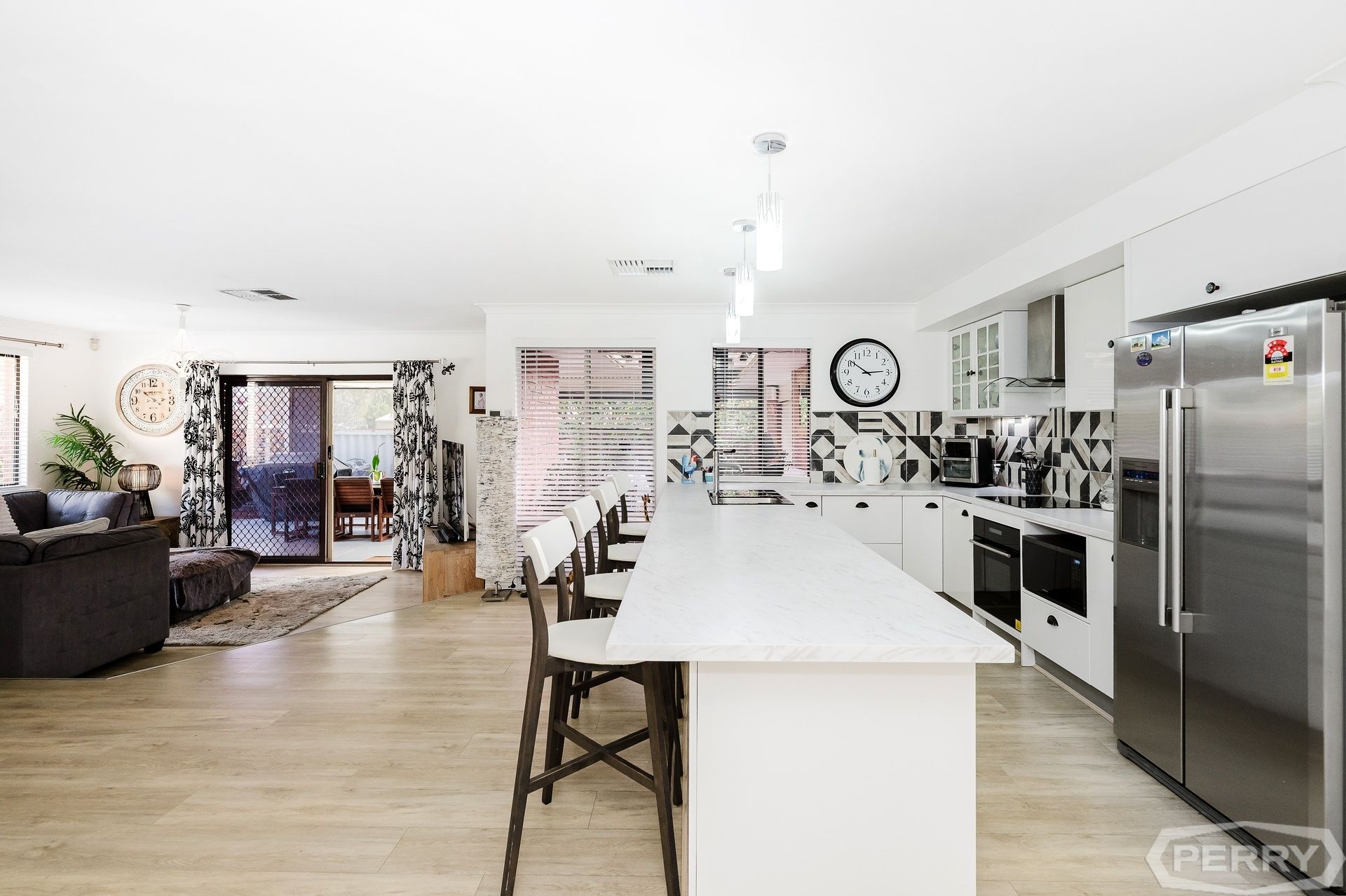 Inside, bedrooms 2, 3 and 4 feature oversized windows, built in robes, pendant dimmable lights, and new plush carpet. The main bathroom echoes the Hamptons-inspired chic décor, with dark fixtures and fittings, double drawer vanity, stunning tiling, and round frameless LED mirror.