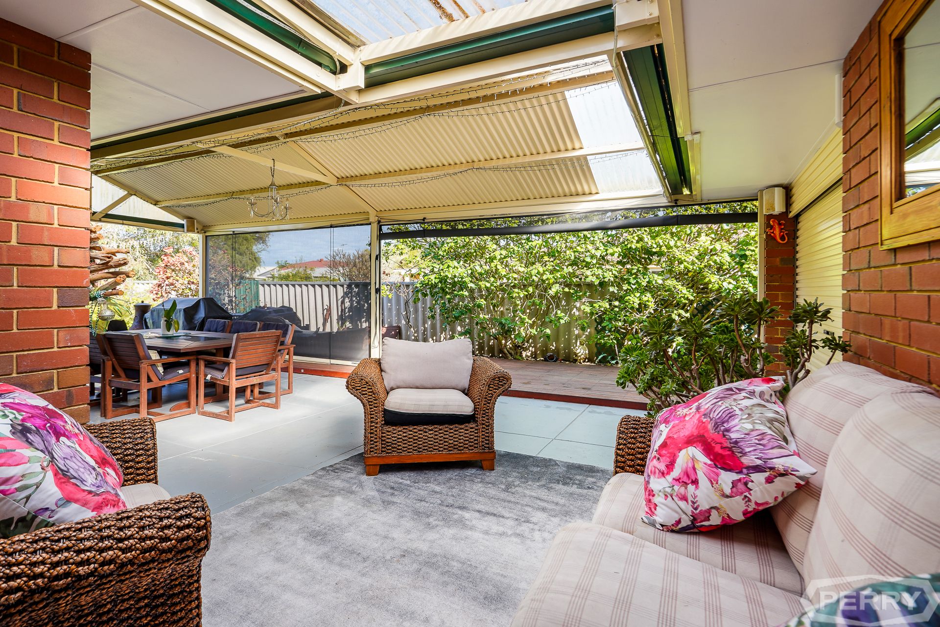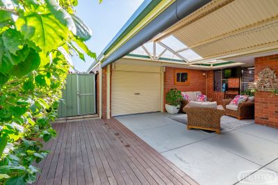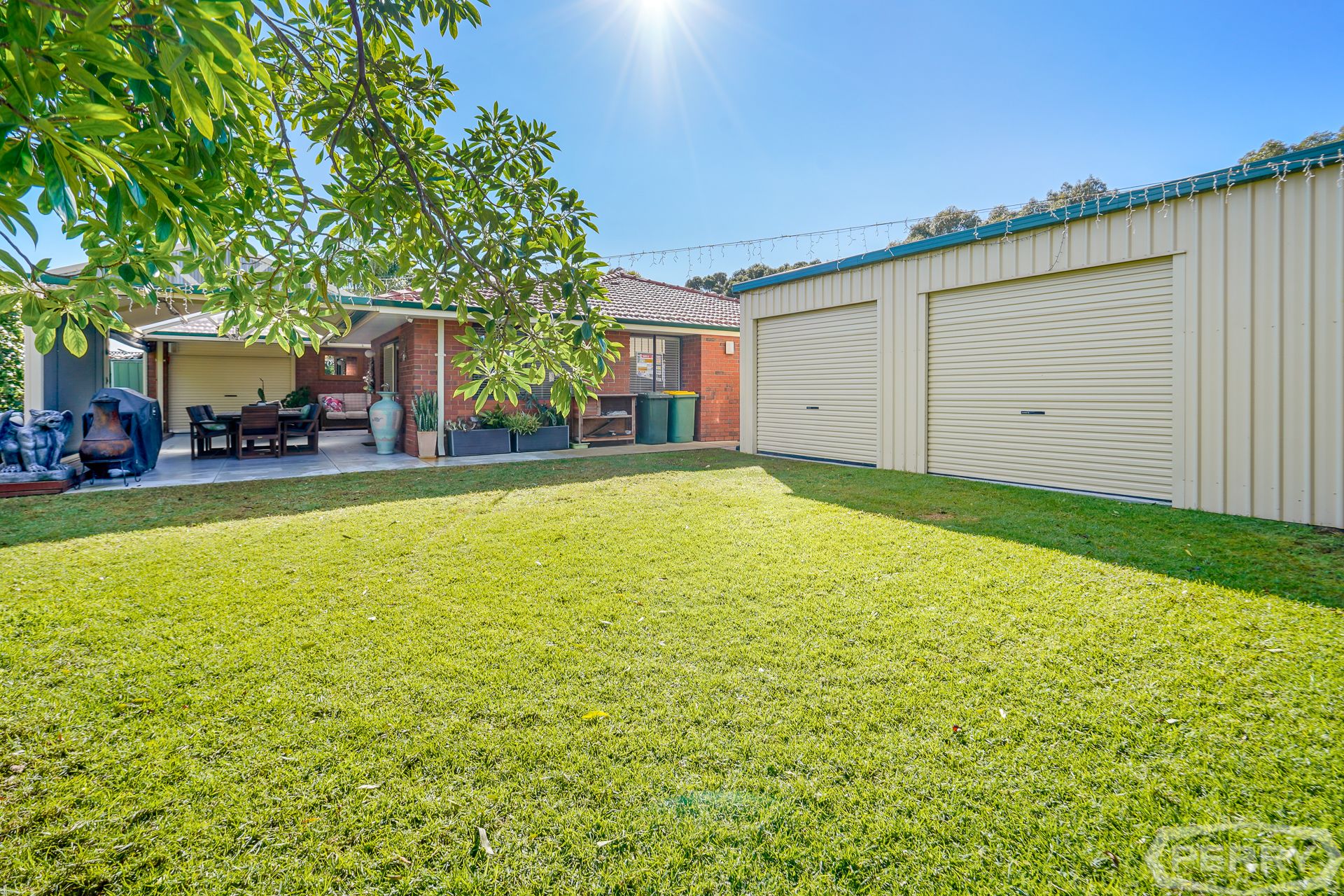 The property has a separate laundry, double garage with attic storage space, automated roller door and drive-through side access to the alfresco area and rear shed, all surrounded by reticulated gardens via bore.