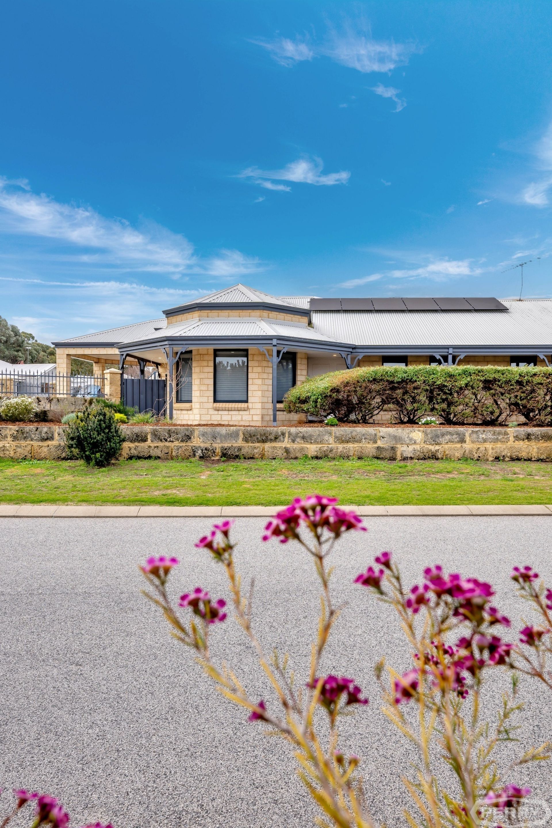 Elegant & bright, its north-west facing orientation is accompanied by a semi wrap-around verandah, steel roof, solar panels, side access & high-access double garage.