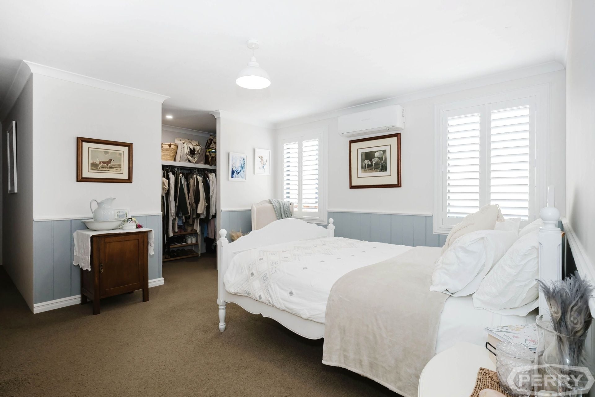 The guest suite provides a walk in robe, sliding doors to the outside courtyard, timber floorboards, access to the main bathroom (semi ensuite), split system air conditioning & stunning pendant feature lighting. The other bedrooms have built in robes & are located just across the hall from the bathroom & private w/c.