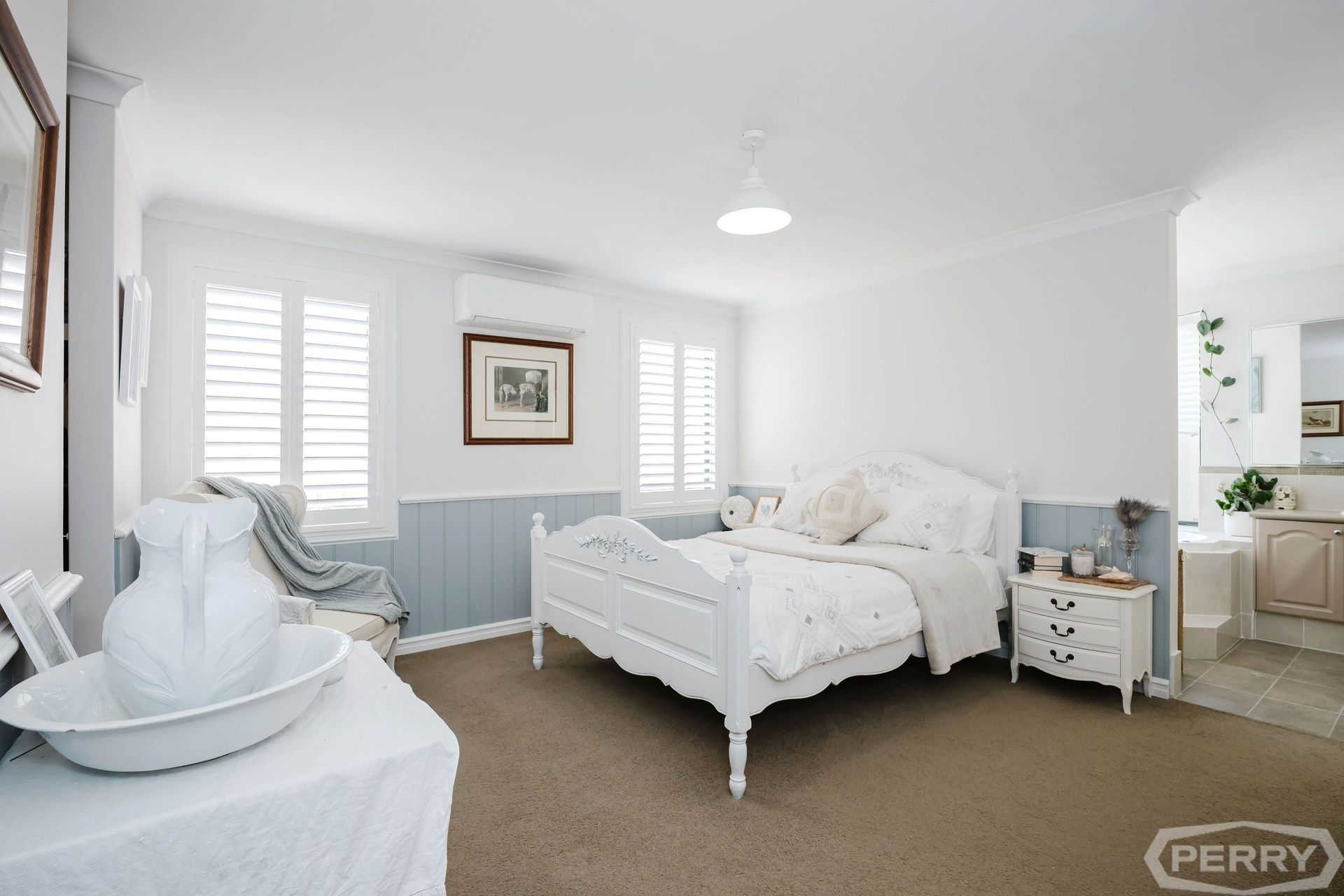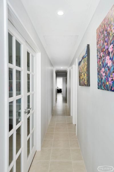 Down the hall, the parents' retreat boasts walk in robe, spacious ensuite bathroom with corner spa bath, double vanities, oversized shower & private w/c.